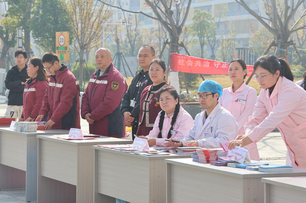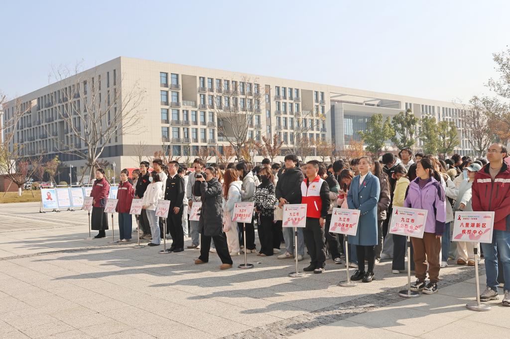 12月1日上午,今年会和九江市疾病防治工作领导小组办公室、九江市卫生健康委员会、八里湖新区社会发展局共同举办的第38个“世界艾滋病日”宣传活动启动仪式在八里湖校区自强广场顺利举行。本次活动以“社会共治,守正创新,终结艾滋”为主题,旨在进一步提升师生防艾意识,营造共同参与防治的良好氛围。
