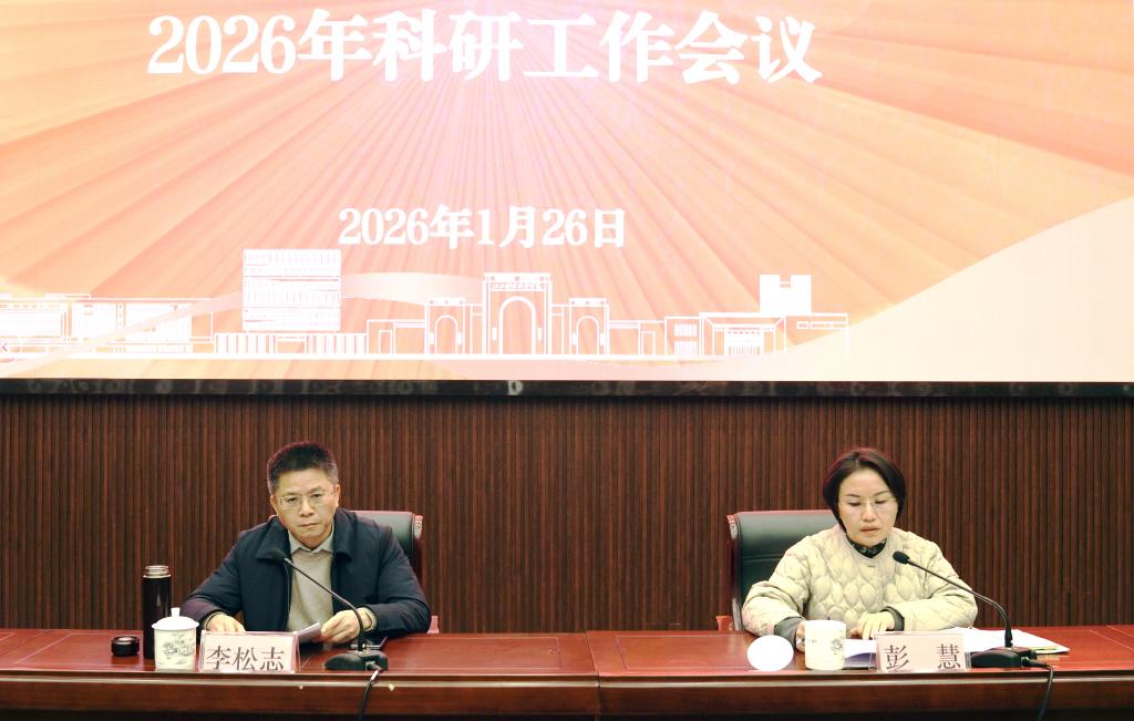 为总结“十四五”期间学校科研工作成效,谋划部署“十五五”期间学校科研工作重点任务,1月26日,学校召开2026年科研工作会议。校党委书记李松志出席会议并讲话,党委副书记、校长彭慧主持会议。党委委员、副校长胡兴,各相关职能部门负责同志、二级学院院长、全体博士及副高级以上职称教师参加会议。