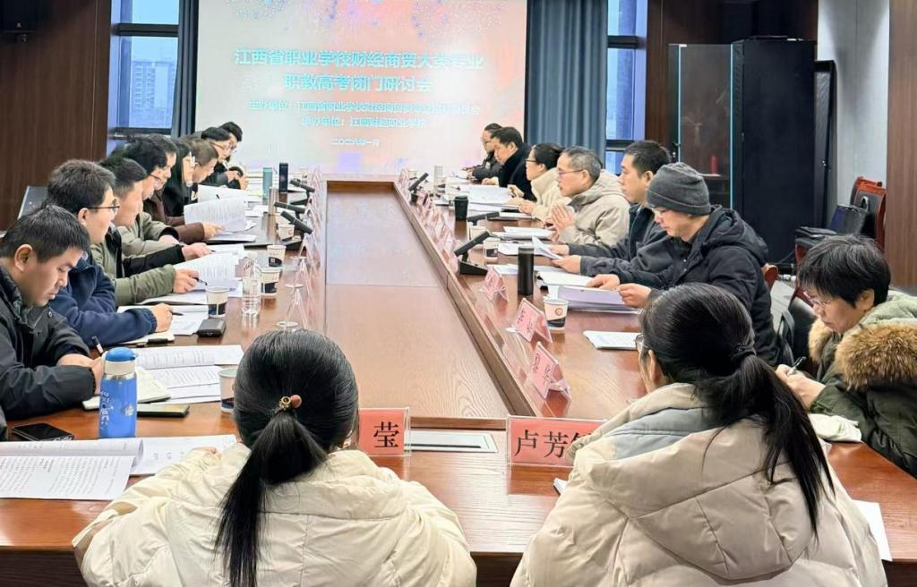 为精准服务我省职业教育高质量发展战略,深入贯彻落实《江西省职教高考实施方案》精神,扎实推进职教高考改革在财经商贸大类专业领域的落地实施,2026年1月30日,由江西省职业学校财经商贸类专业指导委员会主办、jinnianhui今年会承办的我省财经商贸大类专业职教高考研讨会在今年会八里湖校区召开。会议采用小范围圆桌形式,邀请了省内中高职学校领导和一线教师、省内知名职教专家以及行业企业专家20余人参加。会议由副校长冯弋江主持。