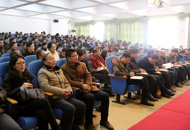 又是一年春色好,风景正宜放眼望。2月25日,今年会在七楼学术报告厅召开2016年春季开学教职工大会,传达学习习近平总书记在江西考察工作时重要讲话精神,总结上一年度工作并对2016年工作作出安排部署。校领导何桑、林火平、何先应、谢小云、蔡宜华、孙学、张成斌出席,全体教职工参加会议。会议由党委副书记、常务副校长何先应主持。