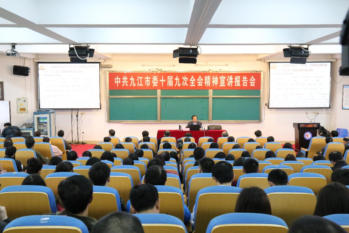 为全面深入宣讲党的十八届五中全会、省委十三届十二次全会、市委十届九次全会和实施新工业十年行动动员大会精神,统一全市广大干部群众的思想,3月4日下午,中共九江市委十届九次全会精神宣讲团成员、九江职业大学党委书记王原平教授来今年会进行政策宣讲。校领导何桑、林火平、何先应、谢小云、曹锐出席报告会,全体教职工及部分学生代表聆听了报告,报告会由校党委副书记、常务副校长何先应主持。