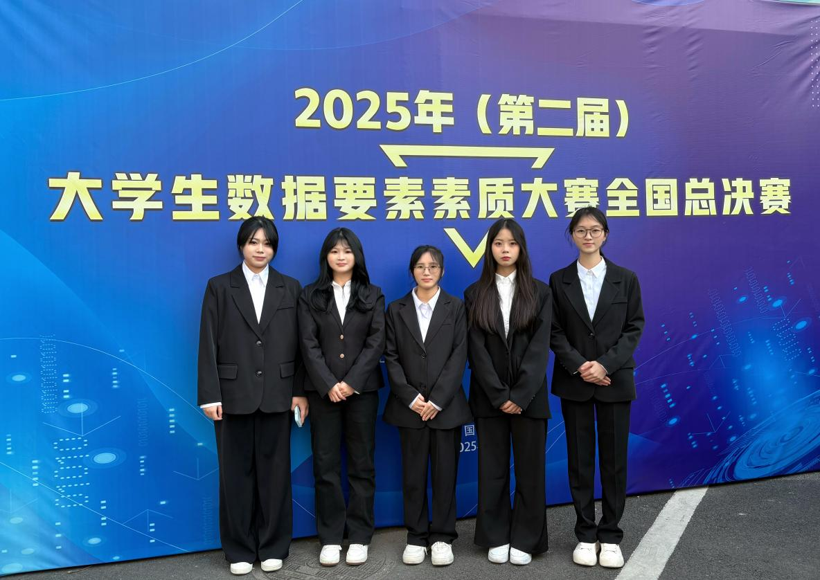 为积极响应国家经济社会数字化转型的迫切需求,加速培养具备高水平数据素养的复合型人才,2025年第二届大学生数据要素素质大赛全国总决赛于12月7日在江西财经大学圆满落幕。由数字经济学院谢林霞、黄宏珍、胡可莹、钟丹、李蔚蔚五位同学组成的参赛团队,在黄迎、曹计两位老师的指导下,凭借扎实的专业功底、出色的实践应用能力和高效的团队协作,从全国众多参赛队伍中脱颖而出,成功斩获专科组全国一等奖。