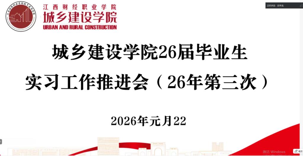 为强化毕业生岗位实习工作指导,引导学生提升安全意识、保障实习质量,2026年元月上旬,城乡建设学院组织召开了2026届毕业生岗位实习动员暨安全教育专题会议,会议由学院实习工作负责人吕亨龙主持,全体毕业班实习指导教师及班主任参会。吕亨龙围绕学校实习工作安排,就实习的课程安排、管理制度、考核要求等作了详细说明,会议特别强调了实习期间的安全应急处置要求,明确了实习指导老师和班主任要帮助26届毕业生就实习期间可能遇到的心理问题及应对方法进行及时指导,鼓励同学们积极面对岗位工作。