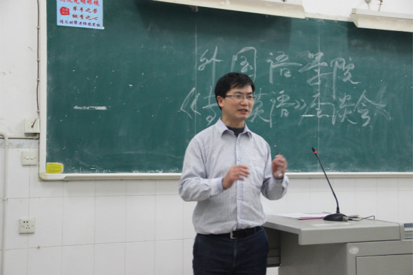 为了认真做好期中教学检查工作,为了全面了解今年会英语课程的教学情况,征求学生对英语教学的要求和建议,进一步提高外语教育教学质量,外国语学院于2016年5月10日晚7点,在教学楼617、708教室分别召开了全校大学英语和专业英语教学期中座谈会。外国语学院院长王胜华教授、外国语学院办公室主任欧阳倍祥老师、大学英语第一教研室主任曹云波老师、大学英语第二教研室主任程颖老师、专门用途英语教研室主任白杨老师和300余名学生代表参加了本次座谈会。