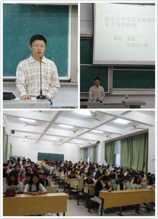 2016年5月23日晚7时,会计第二学院在教学楼617教室举办“成功从财院起步——服务社会”讲座。本次讲座由中国注册会计师、会计教研室主任谭宏教授主讲。会计第二学院部分教师和2014级两百余名学生聆听了此次讲座。