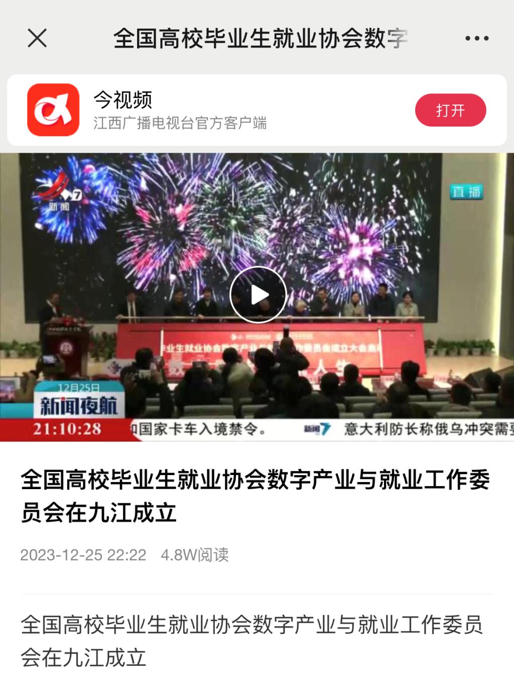 江西广播电视台:全国高校毕业生就业协会数字产业与就业工作委员会在九江成立