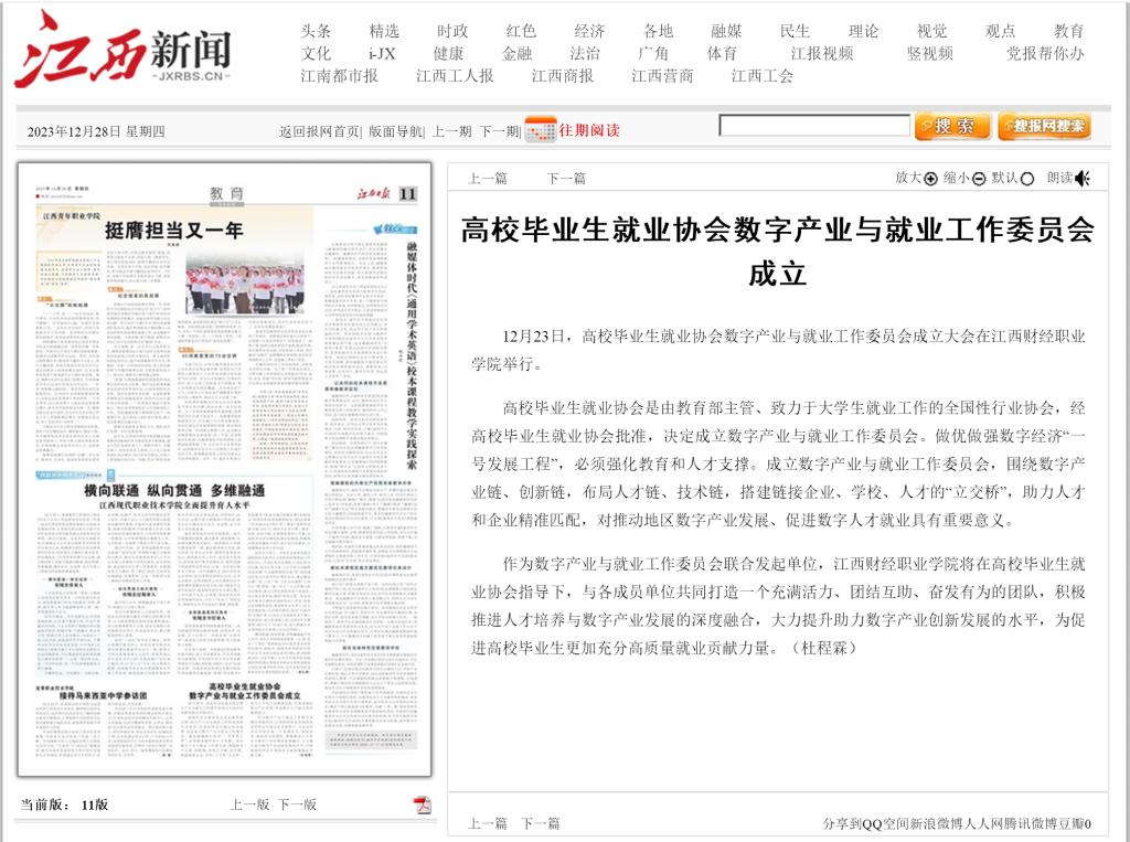 江西日报:高校毕业生就业协会数字产业与就业工作委员会成立