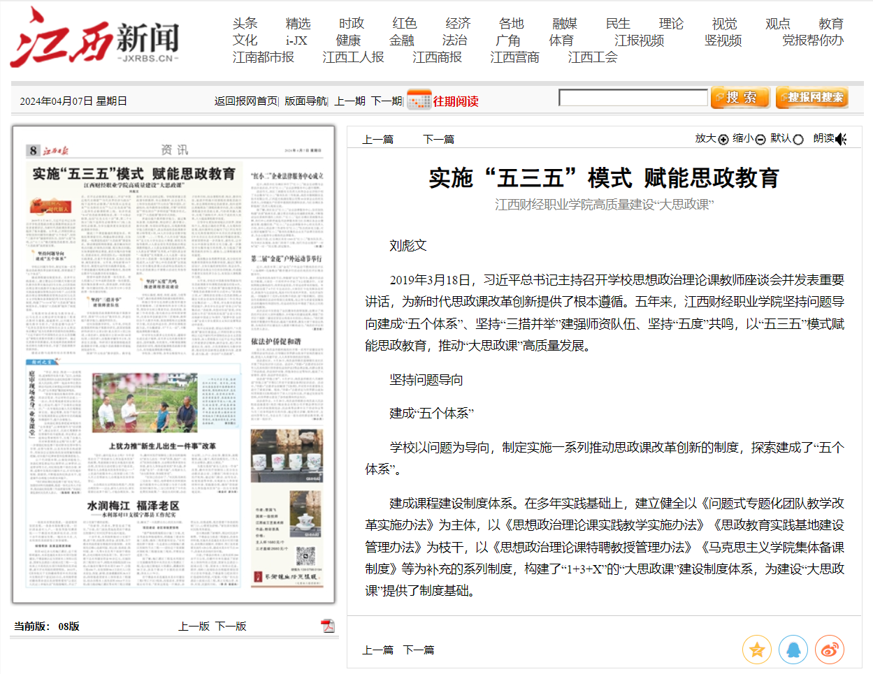 江西新闻:实施“五三五”模式 赋能思政教育 jinnianhui今年会高质量建设“大思政课”
