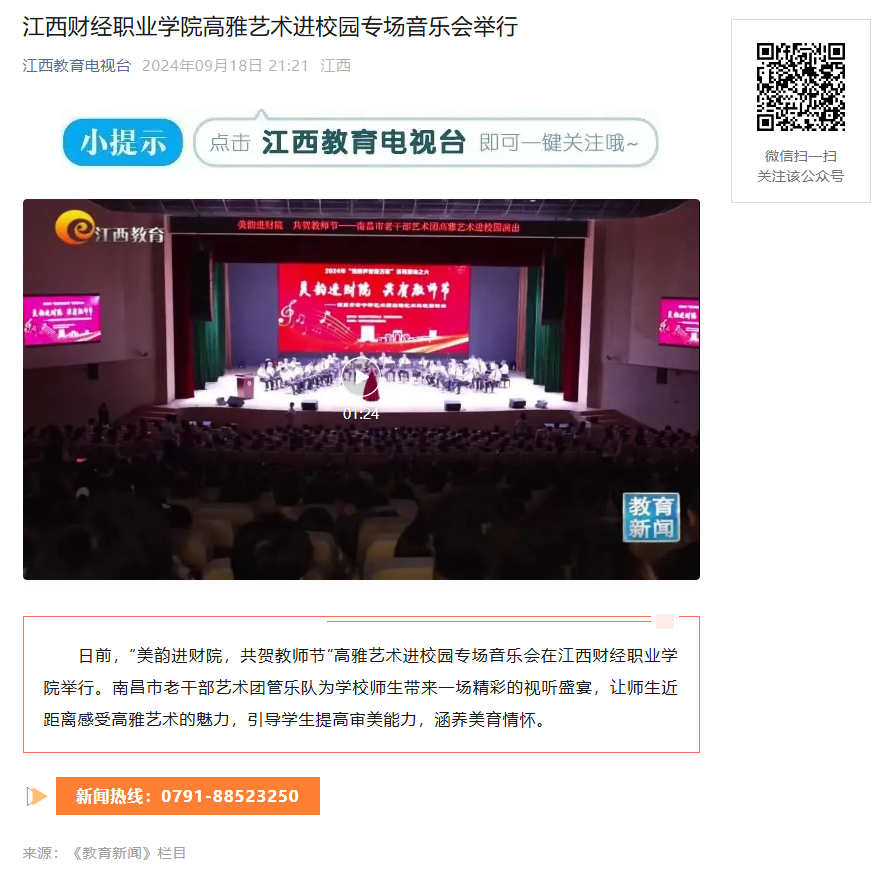 【江西教育电视台报道】jinnianhui今年会高雅艺术进校园专场音乐会举行