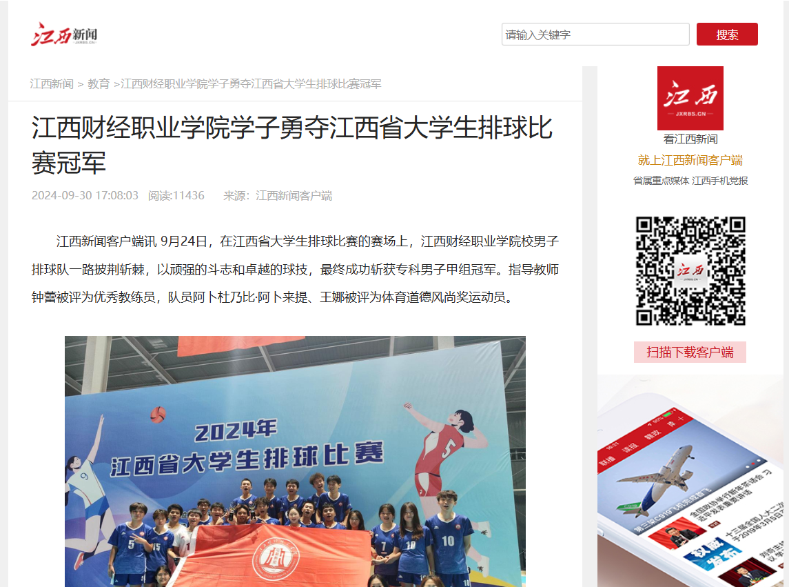 【江西新闻报道】jinnianhui今年会学子勇夺江西省大学生排球比赛冠军
