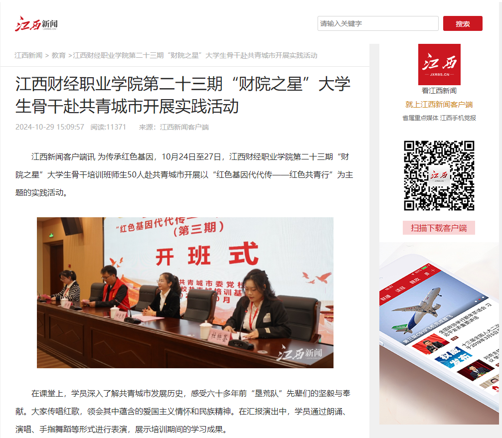【江西新闻报道】jinnianhui今年会第二十三期“财院之星”大学生骨干赴共青城市开展实践活动