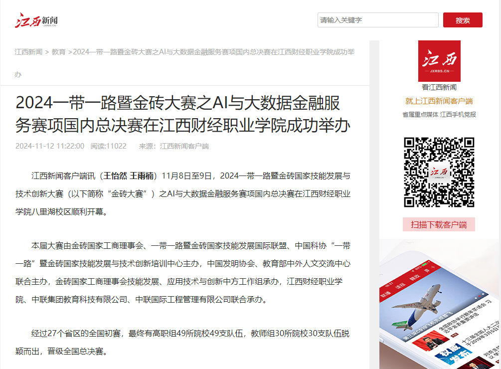 【江西新闻报道】2024一带一路暨金砖大赛之AI与大数据金融服务赛项国内总决赛在jinnianhui今年会成功举办