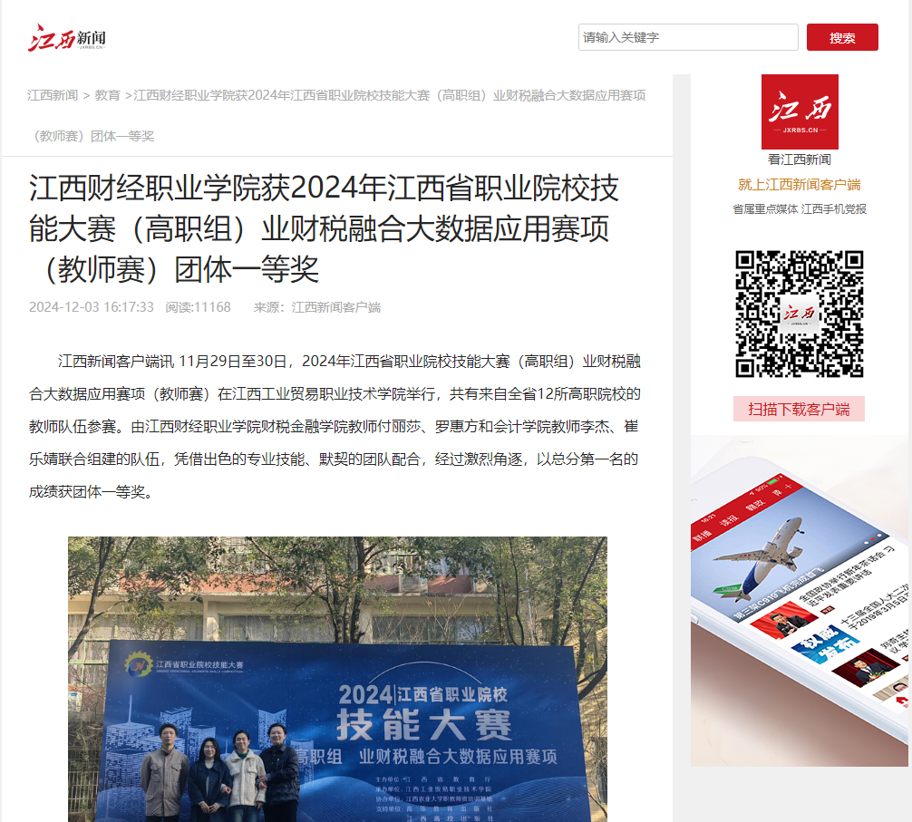 jinnianhui今年会获2024年江西省职业院校技能大赛(高职组)业财税融合大数据应用赛项(教师赛)团体一等奖
