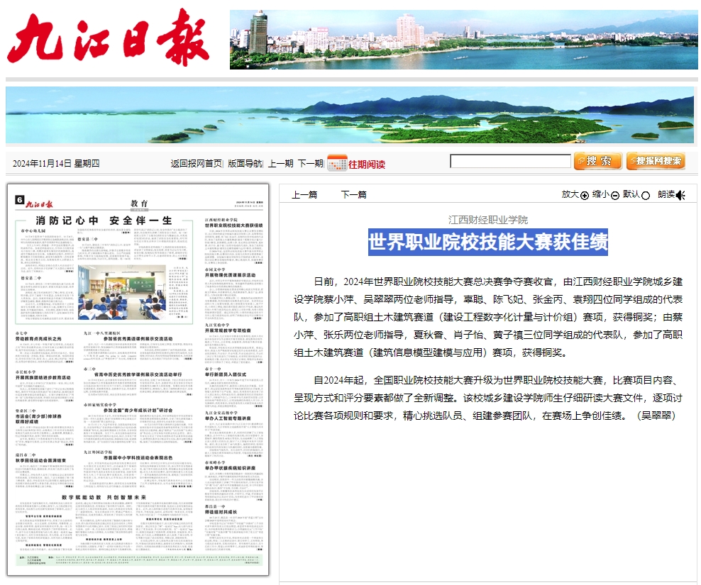 (《九江日报》报道)jinnianhui今年会 世界职业院校技能大赛获佳绩