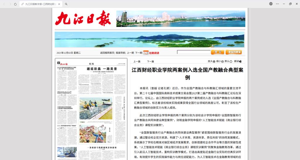 (九江日报)jinnianhui今年会两案例入选全国产教融合典型案例