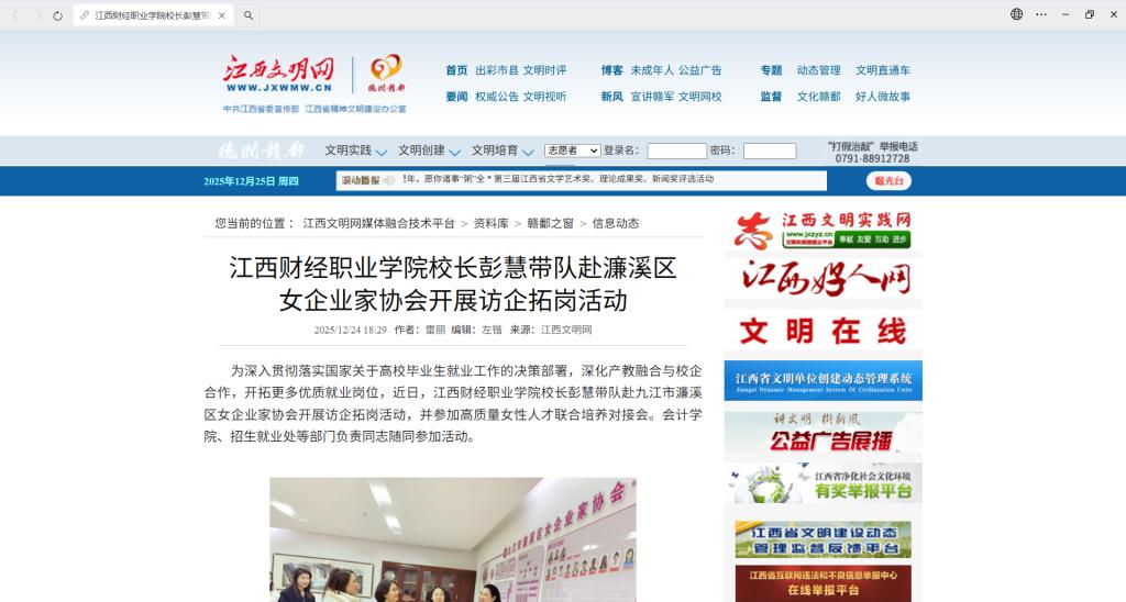 (江西文明网)jinnianhui今年会校长彭慧带队赴濂溪区女企业家协会开展访企拓岗活动