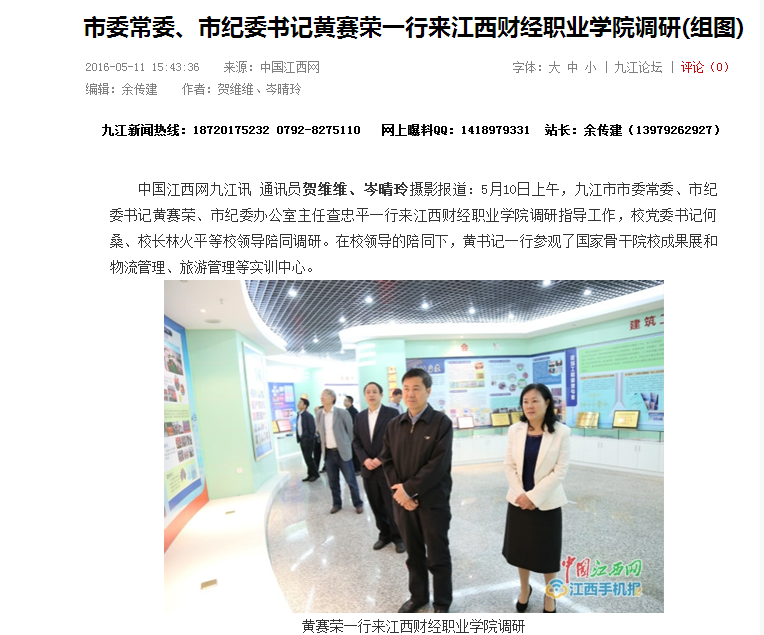 5月11日,中国江西网报道市委常委、市纪委书记黄赛荣一行来今年会调研。