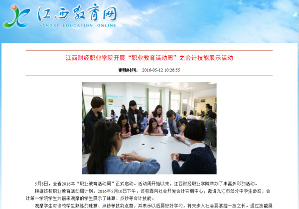 5月12日,省教育厅网站报道今年会开展“职业教育活动周”之会计技能展示活动。