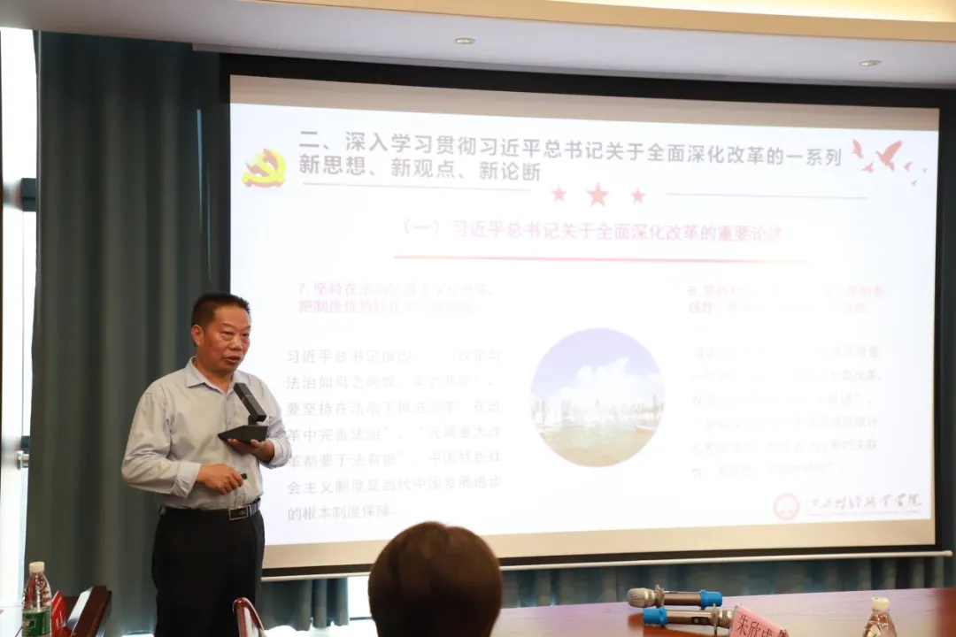 17日上午,今年会马克思主义学院院长朱欣成教授为与会人员进行了《深入学习贯彻党的二十届三中全会精神》专题授课,从全会的主题、习近平总书记关于全面深化改革的一系列新思想新观点新论断及进一步全面深化改革的总体思路与系统部署三个方面深入浅出地解读了会议精神,并针对团员青年落实党的二十届三中全会精神提出了具体建议。