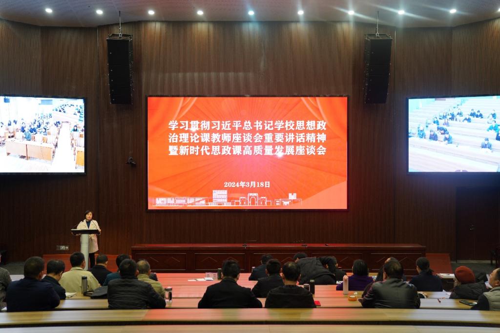 座谈会上,彭慧校长首先领学重温了习近平总书记在学校思想政治理论课教师座谈会上的重要讲话精神,强调思政课是落实立德树人根本任务的关键课程,办中国特色社会主义教育,就是要理直气壮开好思政课;办好思政课关键在教师,关键在发挥教师的积极性、主动性、创造性;推动思政课改革创新,要不断增强思政课的思想性、理论性和亲和力、针对性;要建立党委统一领导、党政齐抓共管、有关部门各负其责、全校协同配合的工作格局。