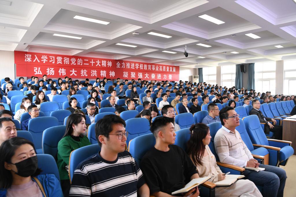 校党委主题教育读书班成员、全体中层干部、党支部书记、师生代表参加报告会,南昌校区视频参会。