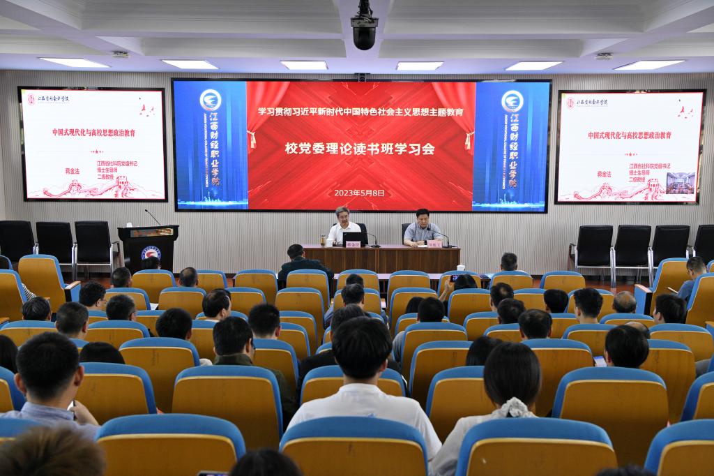 5月8日,今年会在综合楼7楼报告厅举办学习贯彻习近平新时代中国特色社会主义思想主题教育读书班专题辅导报告会,特邀财政部跨世纪学术带头人、江西省人大财政经济委员会委员、省社科院党组书记蒋金法教授作专题报告。报告会由校党委书记刘彪文主持。