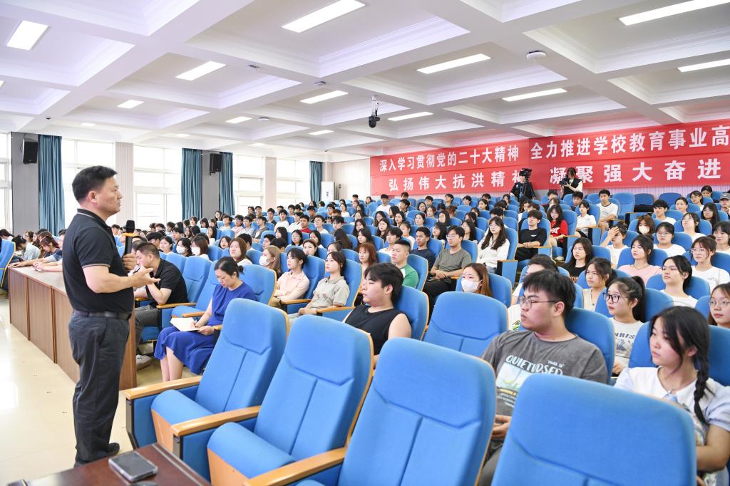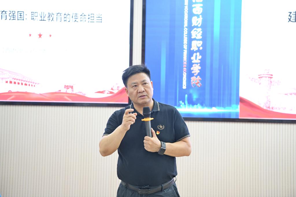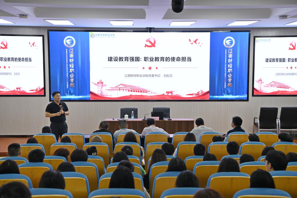 6月25日下午,校党委书记刘彪文在七楼报告厅以《建设教育强国:职业教育的使命担当》为题,为全校各班班长、团支书250余人讲授了一堂生动的思政课。学工处、团委、创新创业实践学院、马克思主义学院等部门负责人到场听课。