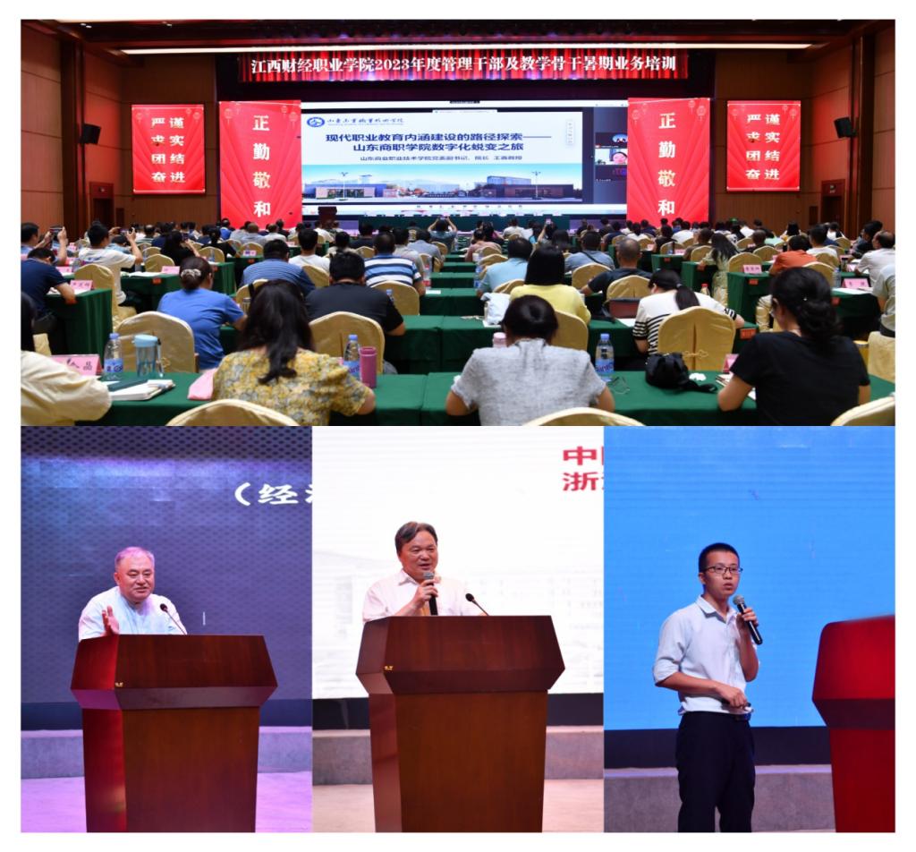 培训期间,山东商业职业技术学院党委副书记、校长王鑫教授以《现代职业教育内涵建设的路径探索》为题、山西省财政税务专科学校原党委副书记、校长赵丽生教授以《境界 格局 思维 素质 能力 奋斗》为题、泛微公司资深项目经理叶明以《校园OA系统使用与维护》为题、浙江金融职业学院原党委书记周建松教授以《申本创大与学校关键能力建设》为题,先后作了精彩的专题报告。