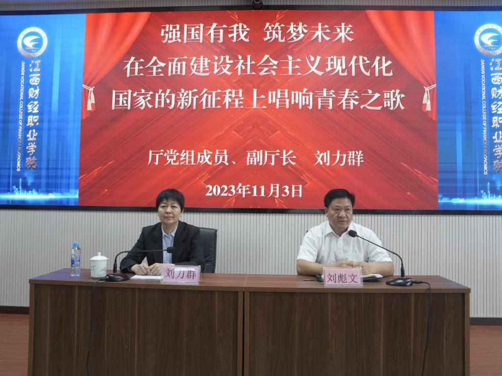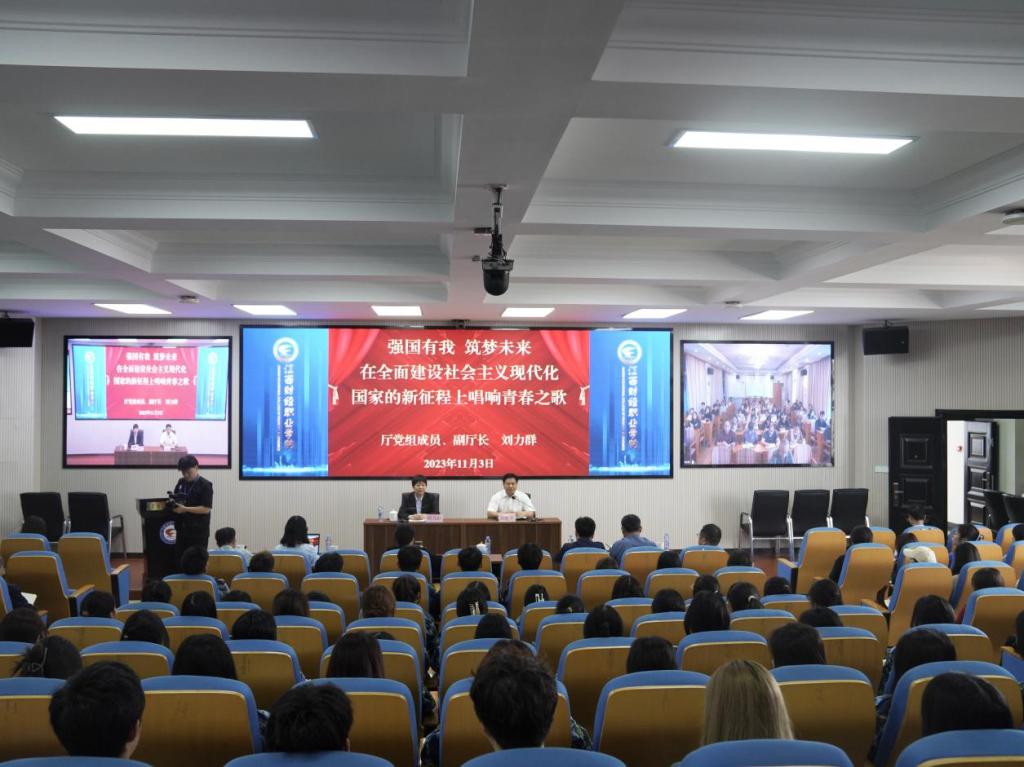 11月3日,省财政厅党组成员、副厅长刘力群来到今年会为大学生讲授思政课。学校领导班子成员、中层干部和师生代表共300余人聆听了讲课。
