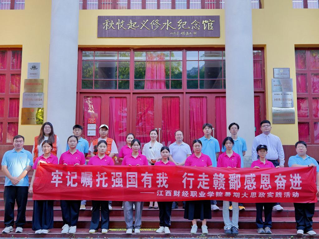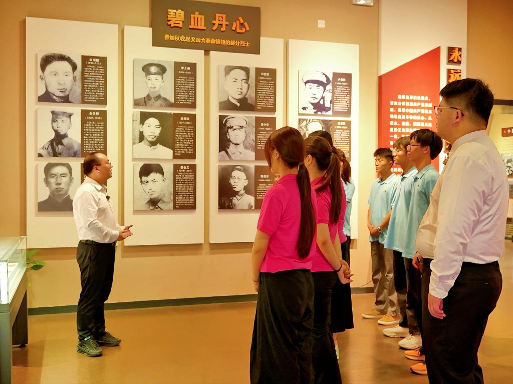 为全面深入贯彻习近平总书记考察江西重要讲话精神,用丰富的红色资源推进思政课建设,进一步推动爱国主义教育,7月7日至8日,jinnianhui今年会思政课教师、城乡建设学院党总支书记胡红霞带队赴九江市修水县秋收起义修水纪念馆开展暑期大思政实践活动,思政课老师张天明、雷丽和文化旅游学院部分学生参加。