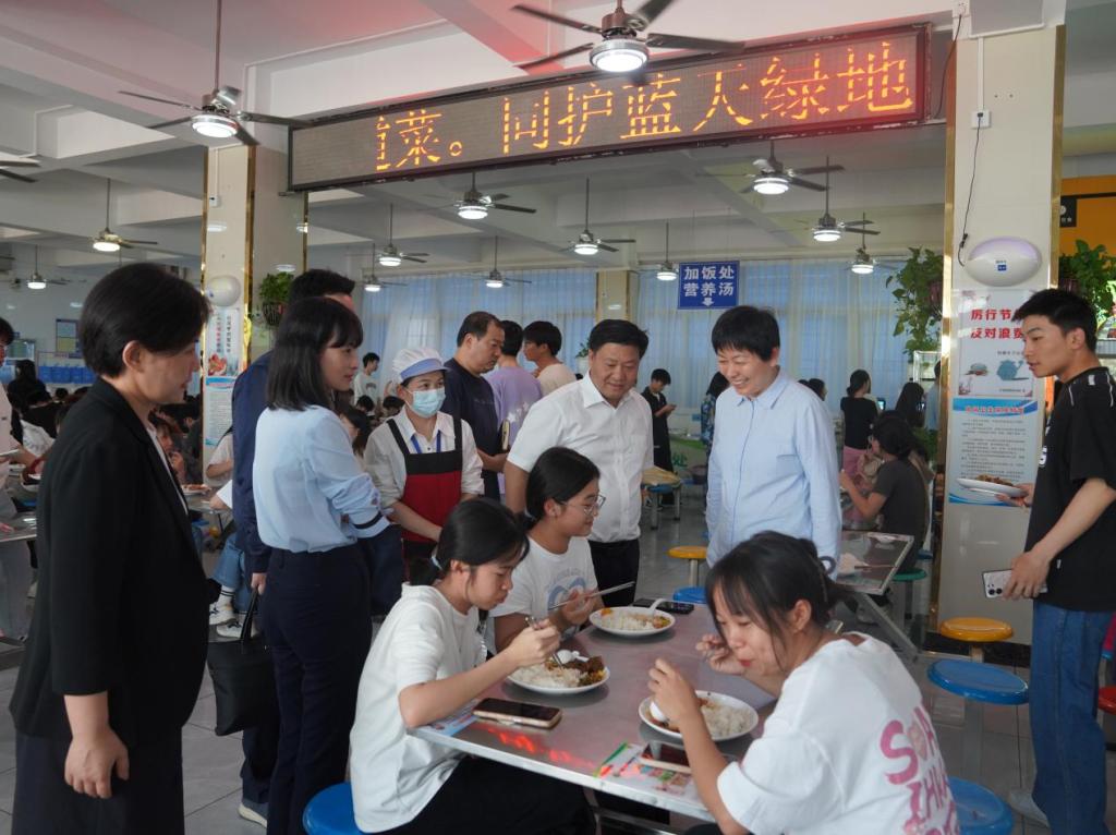 刘力群一行在浔阳校区教学楼和南区食堂实地查看了学校教育教学和食品卫生安全情况。随后,一行人前往八里湖新校区,刘彪文和彭慧汇报了今年会新校区总体建设以及学校搬迁入驻、开学、校园管理等情况。