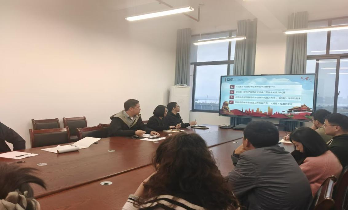 研讨会上,赵新村以“弘扬抗洪精神,强化使命担当”为题讲述抗洪精神,强调全体教师要在不同岗位上发扬众志成城、顽强拼搏、敢于胜利的精神品质,凝聚强大工作合力强化担当魄力做好学院各项工作;黄博文以“高等学校课程思政建设指导纲要解读”为题,结合学院工作实际详细讲解如何在教学各环节融入课程思政,提高育人成效;聂群华回顾了抗美援朝精神,分享了自己如何将先辈的优秀品质融入具体的课程教学中,结合历史事件深刻理解中国共产党人谱系的内涵和价值。